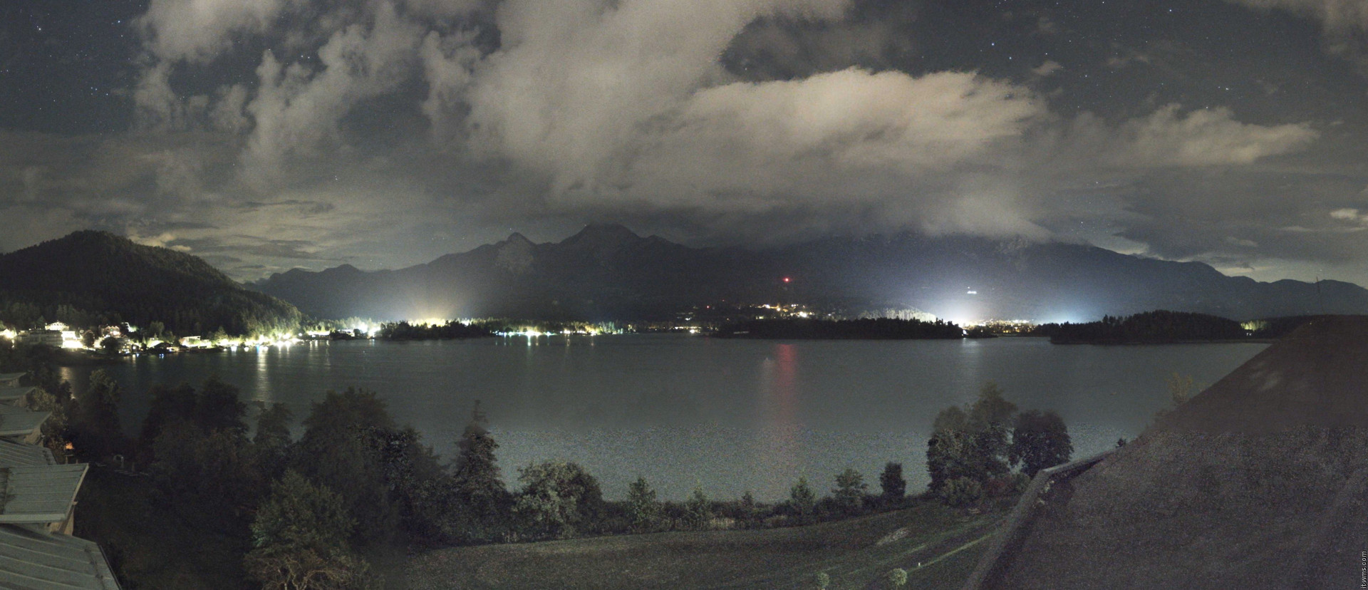 blieck vom Hotel auf den Faakersee. Webcam auf ca. 569 Meter Seehöhe. (Quelle: www.kranerhof.com)