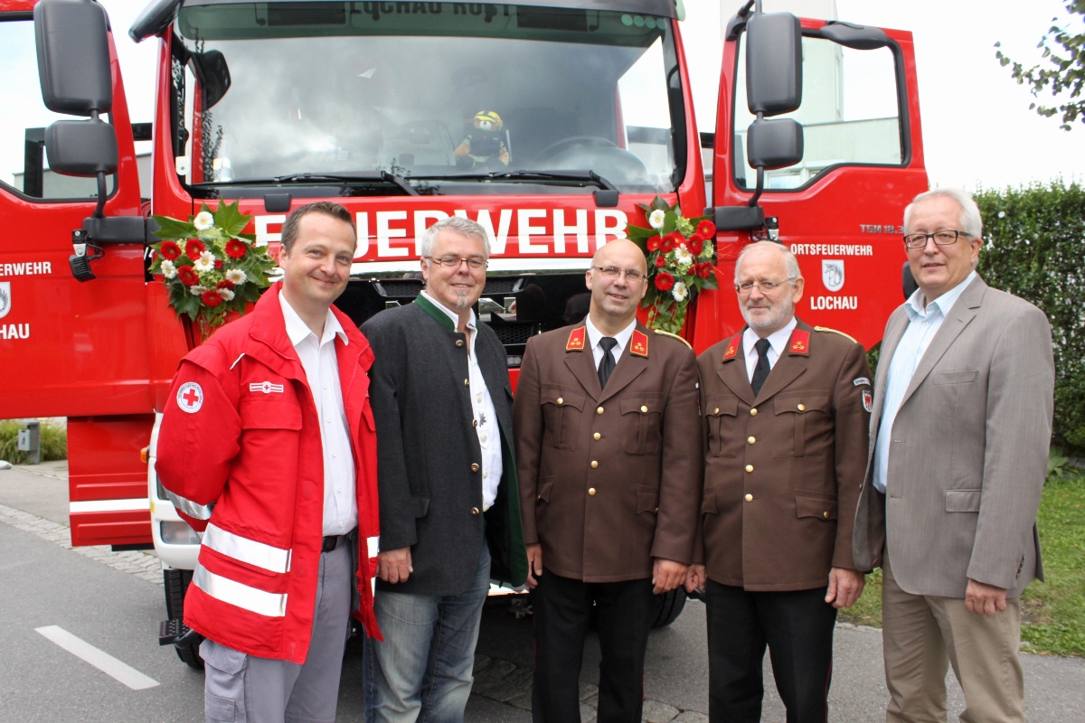 Kommandant der Rettungsabteilung Bregenz Roland Paterno, der Sicherheitsbeauftragte der ASFINAG Hermann Wackerle, Kommandant Guntram Matt (Lochau), Kommandant Karl Kohler (Bregenz Rieden) und der Lochauer Vizebürgermeister Michael Simma.