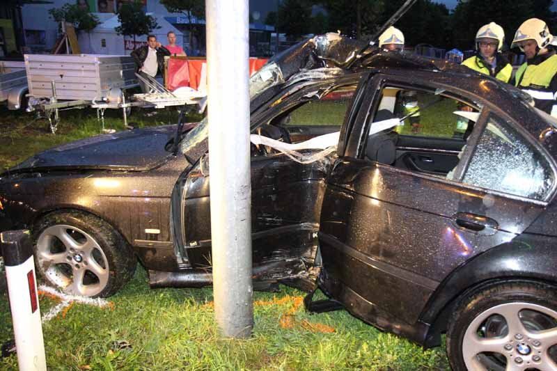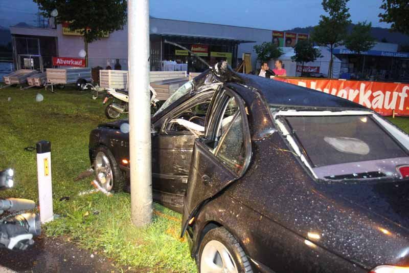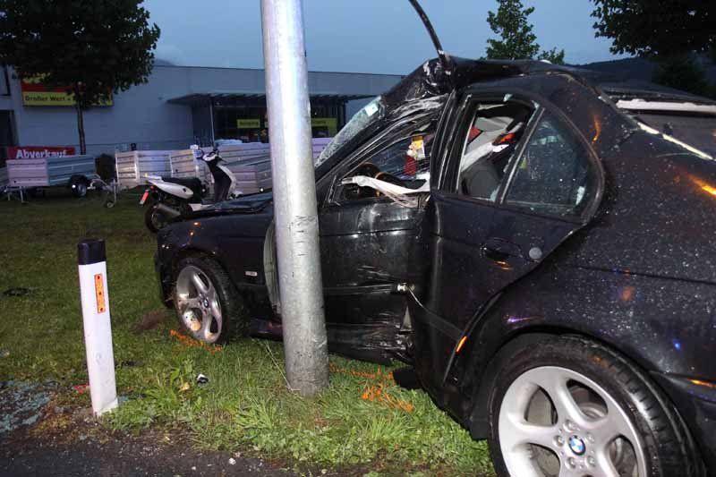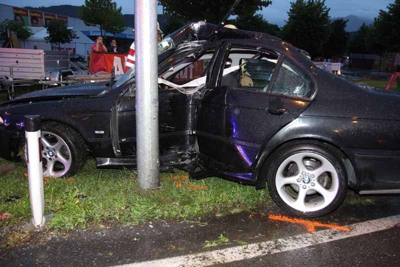 Schwerer Verkehrsunfall in Rankweil fordert vier Verletzte - BMW prallt gegen Laternmast