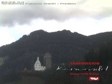 Blick vom Gasthof Schaller auf den Freundsberg. Webcam auf ca. 538 Meter Seehöhe. (Quelle: www.silberregion-karwendel.com)