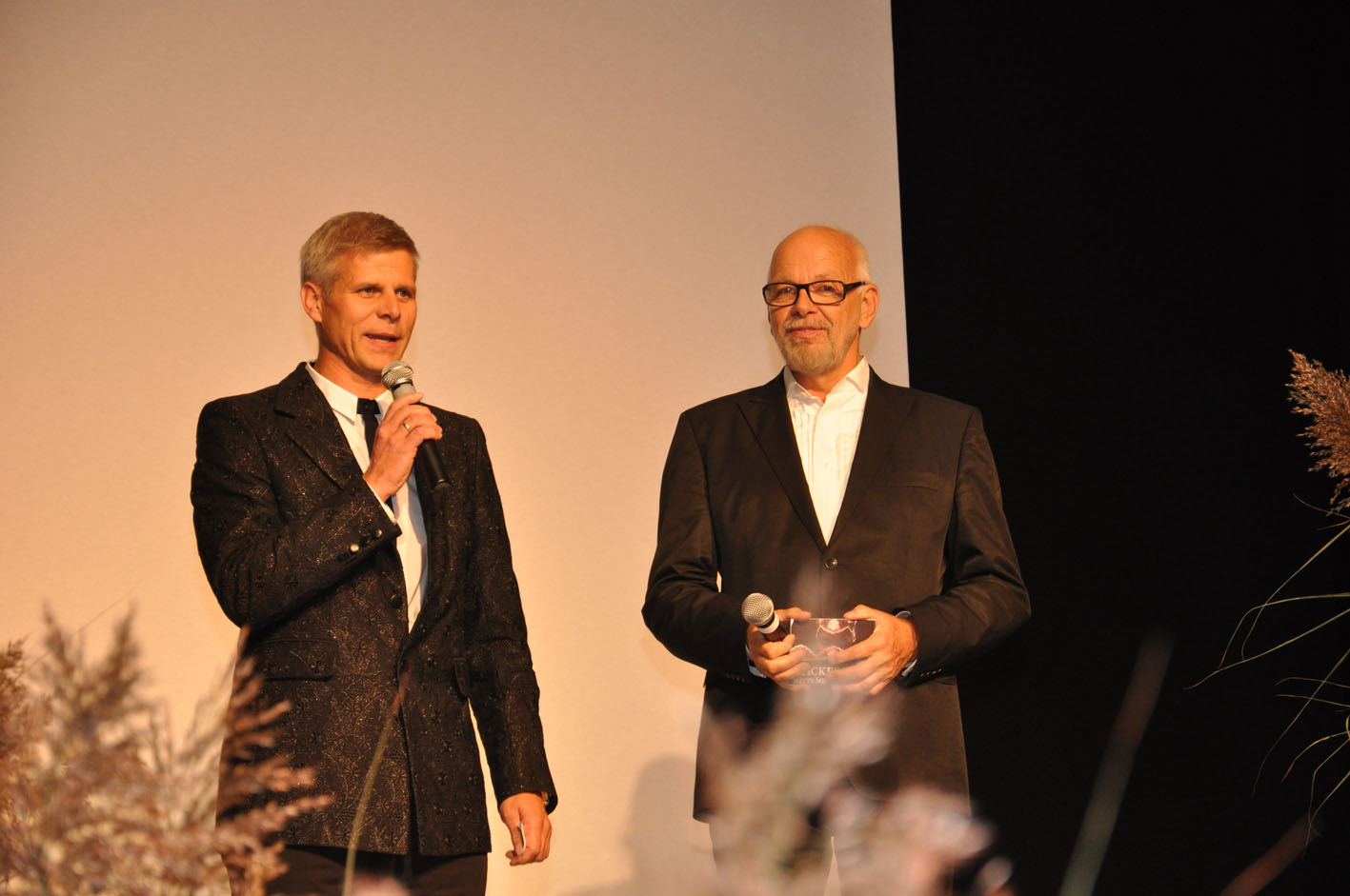 Markus Riedmann, Obmann der Stickereiwirtschaft mit Moderator Hannes Schenkenbach.