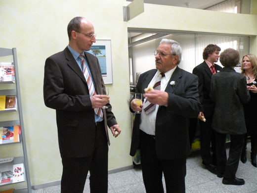 Der Standesbeamte unterhielt sich mit dem Brautvater.