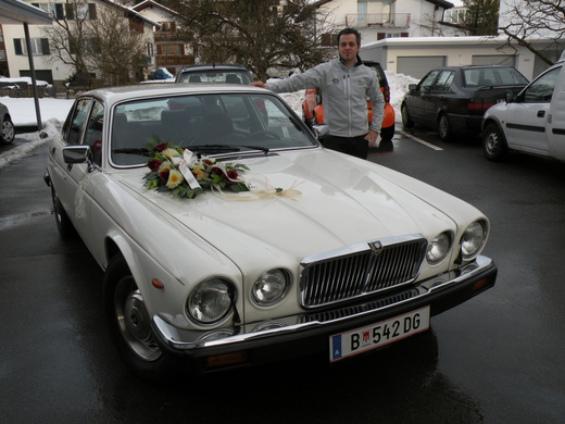 Mit dem weißen Jaguar-Oldtimer ging die Fahrt zum Standesamt.