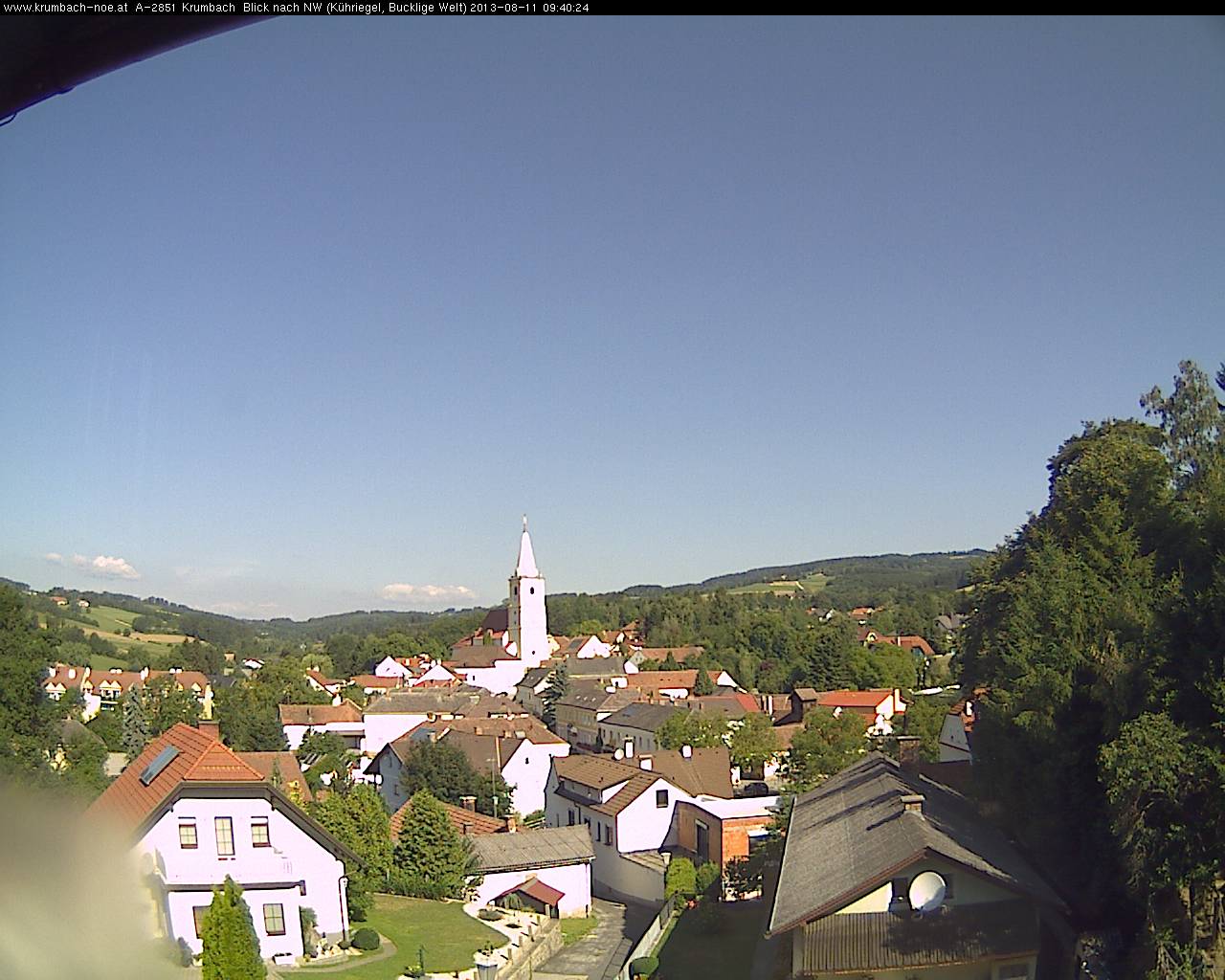 Blick über Krumbach nach Nord-Westen. Webcam auf ca. 517 Meter Seehöhe. (Quelle: www.krumbach-noe.at)