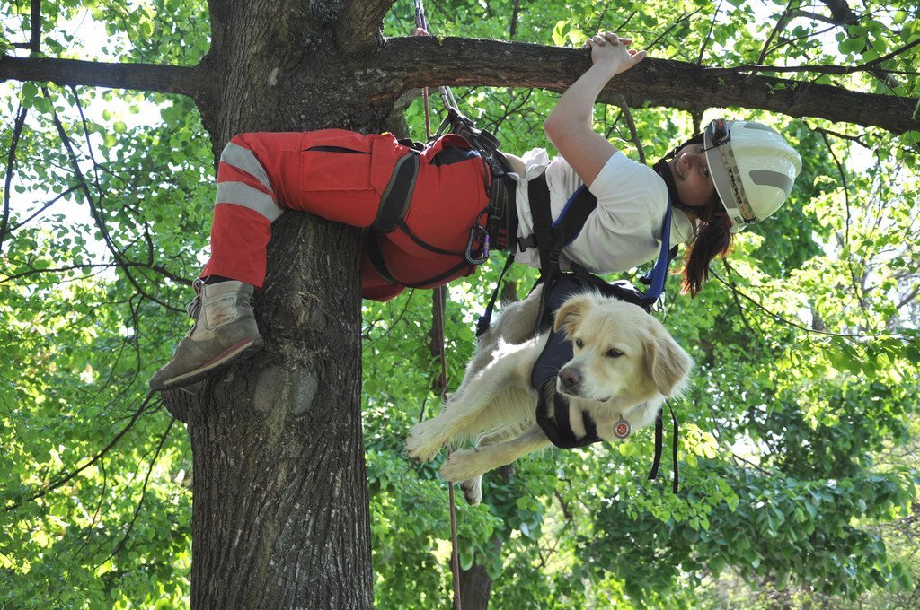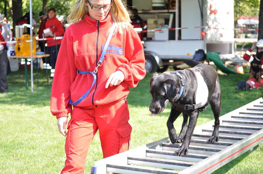 Training der Johanniter-Rettungshunde im Spider Rock XL in der Donaumarina