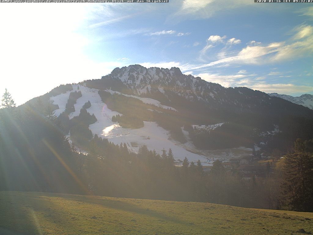 Blick vom Skigebiet Speicherteich Höhenweg aufs Dorf. Webcam auf ca. 1051 Meter Seehöhe. (Quelle: at.wetter.tv)