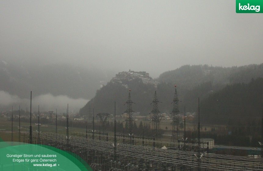 Blick vom Umspannwerk Landskorn/Villach auf die Burgruine Landskorn. Webcam auf ca. 513 Meter Seehöhe. (Quelle: http://webcams.kelag.at)