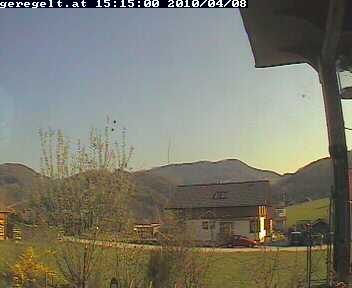 Blick von der Sonnensiedlung in der Dorf Au in Richtung Südost. Webcam auf ca. 356 Meter Seehöhe. (Quelle: http://www.geregelt.at/webcam/)
