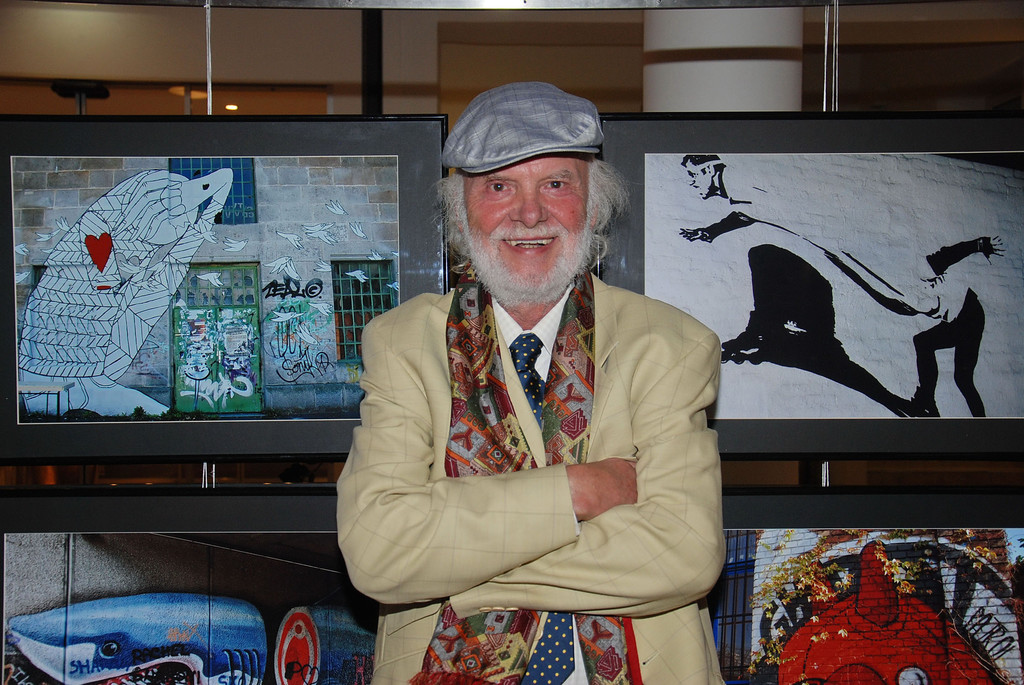 Dietmar Wanko bei seiner Graffiti-Ausstellung im Seehotel Am Kaiserstrand.