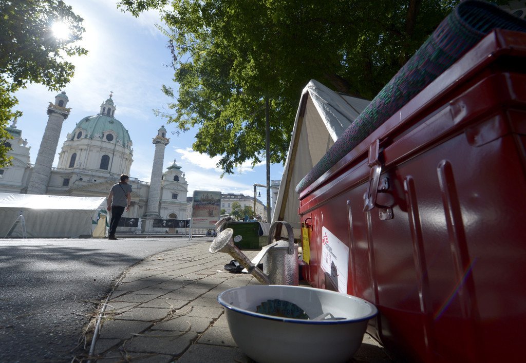 Flüchtlingslager von Ärzte ohne Grenzen am Karlsplatz