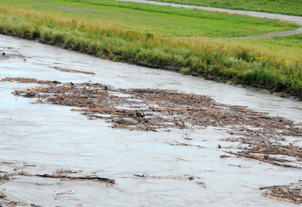 Hochwasser im Rhein nach Unwetter in Graubünden