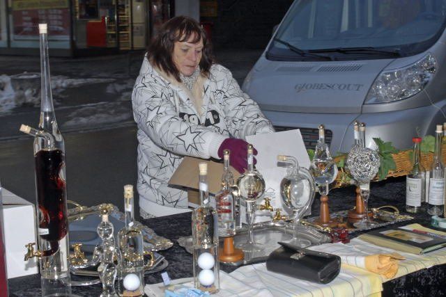 Rosmarie Mathis am Marktstand von ihr und ihrem Mann Bruno. (Foto: Gerhard Scopoli)