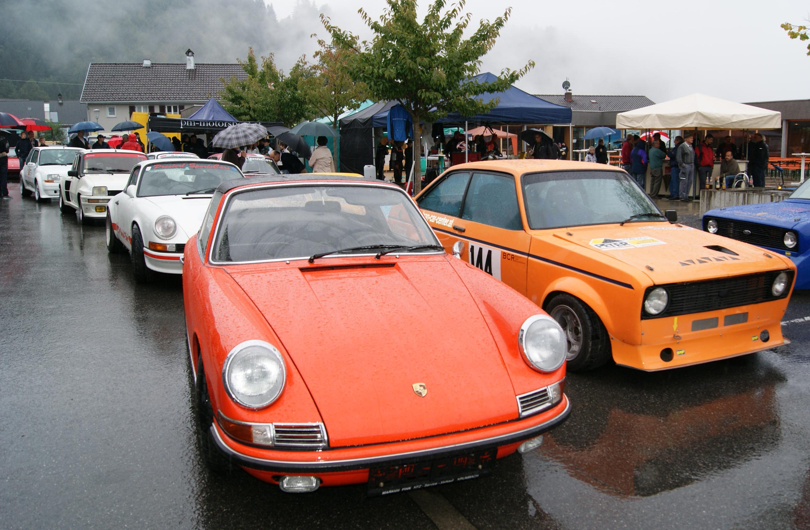 Die Boliden auf dem Dorfplatz.
