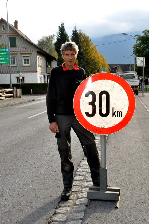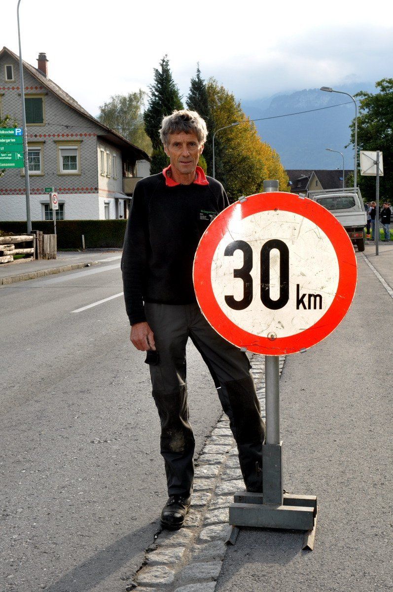 „Tempo 30“ heißt es nun auf dem bemalten Abschnitt der L55 in Mäder.