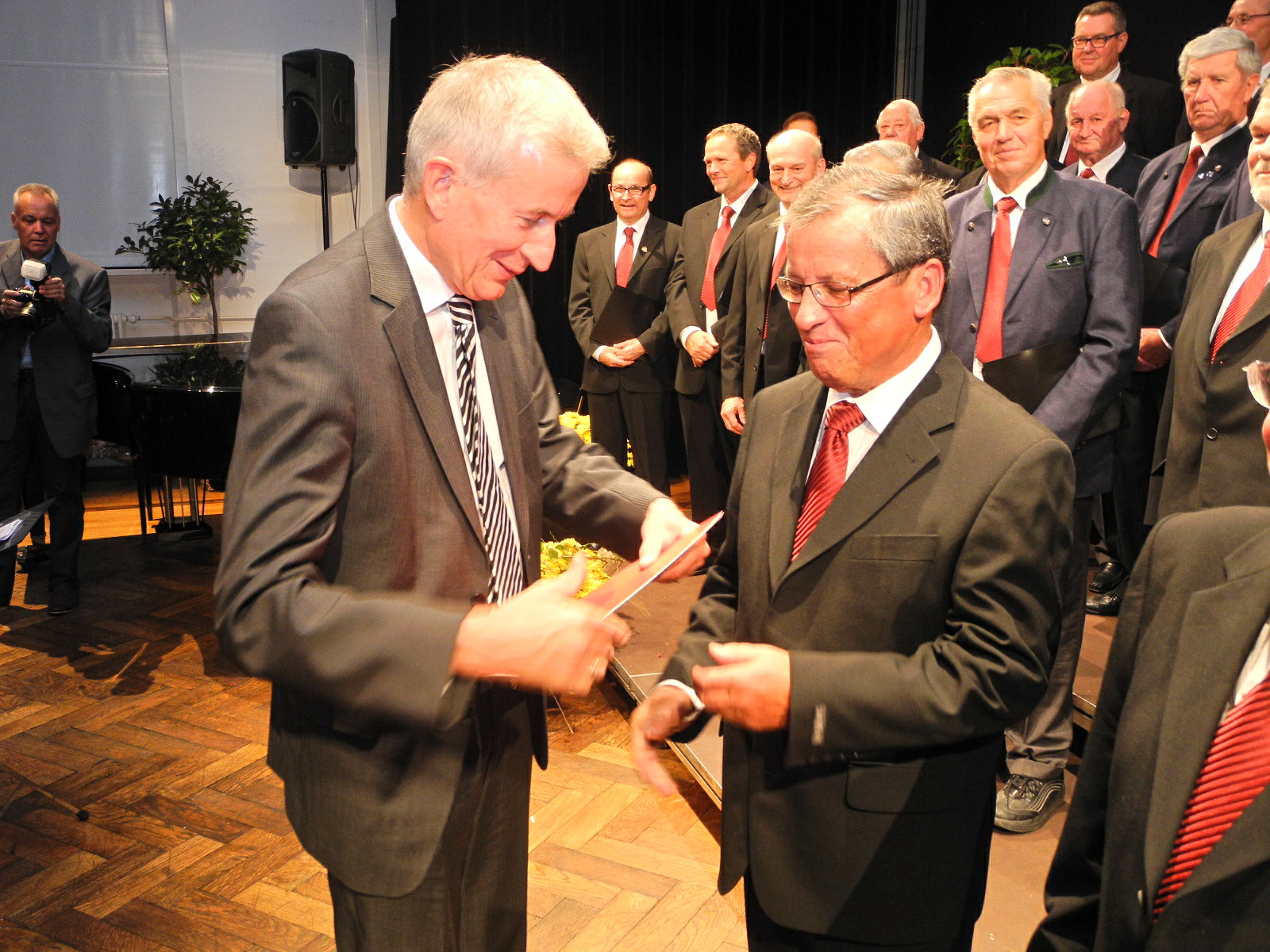 Bürgermeister Wilfried Berchtold übergibt die Ehrenbriefe