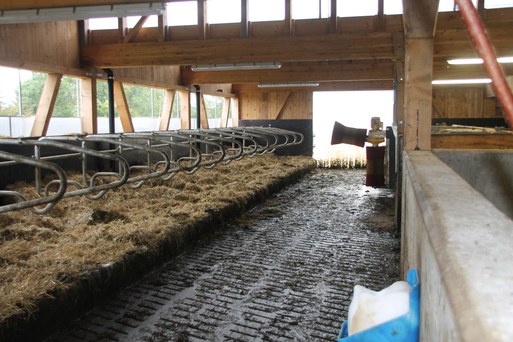 Der neue, lichtdurchflutete Laufstall bietet Platz für 27 Kühe und auf Wunsch können sich die Kühe an der automatischen Bürste eine Massageeinheit gönnen.