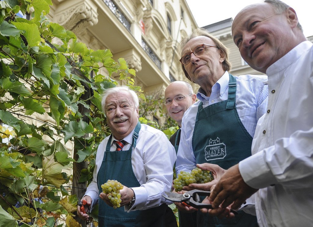 Bürgermeister Häupl erntete im kleinsten Weingarten Wiens am Schwarzenbergplatz