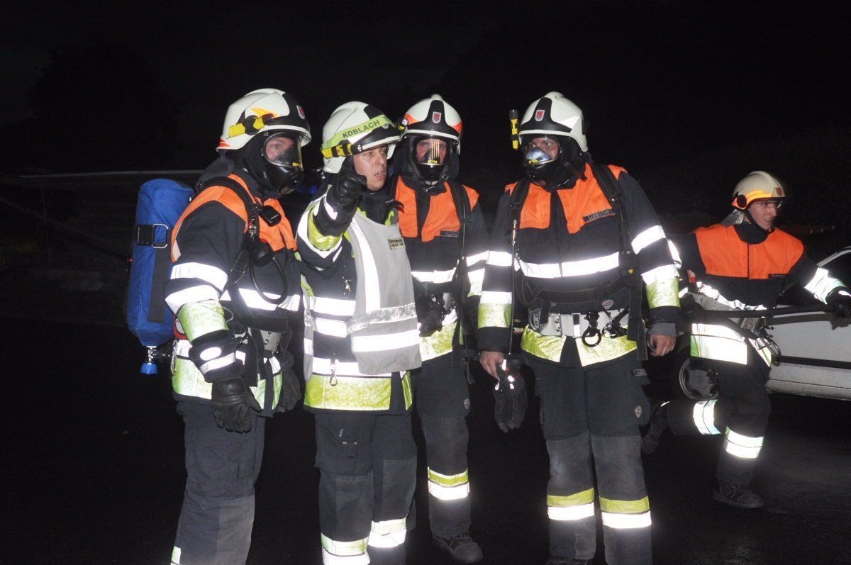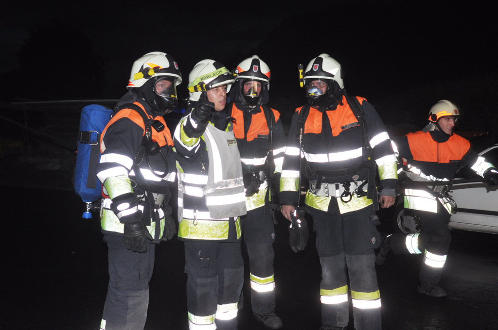 Mit schwerem Atemschutz wurde der Brand im Lager in Angriff genommen.