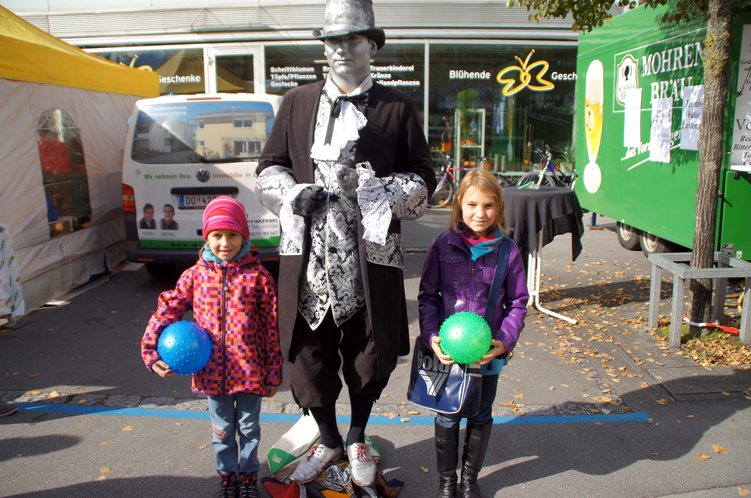 v.li. Fiona(8), Anton der Pantomime und Sarah(10)