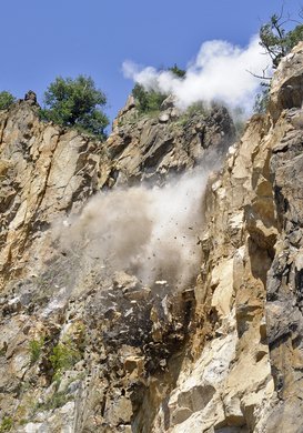 Gezielte Sprengung an einer Felswand