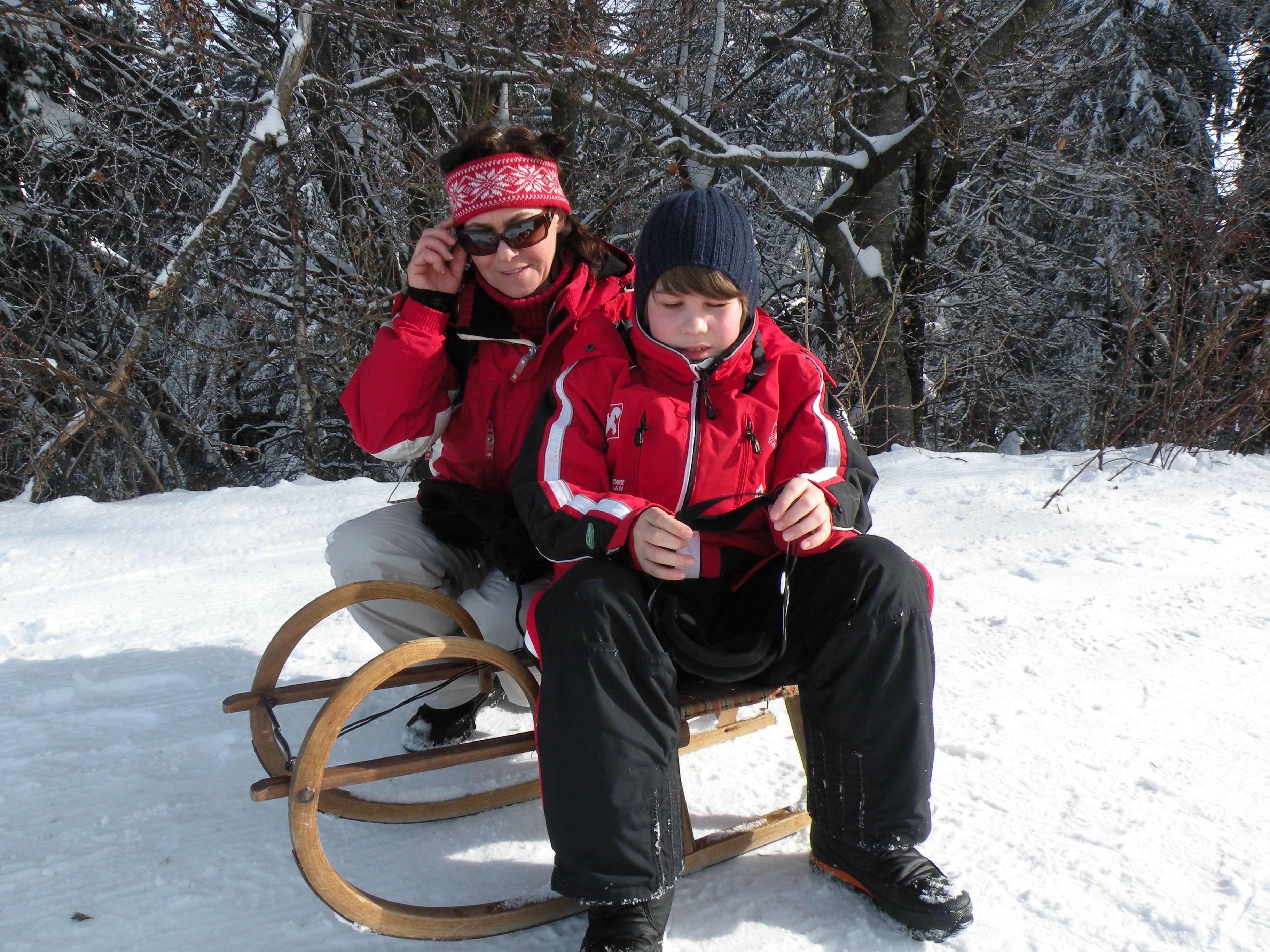 Roswitha und Sohn Fabian aus Bregenz wagen eine Rodel-Abfahrt ins Tal.