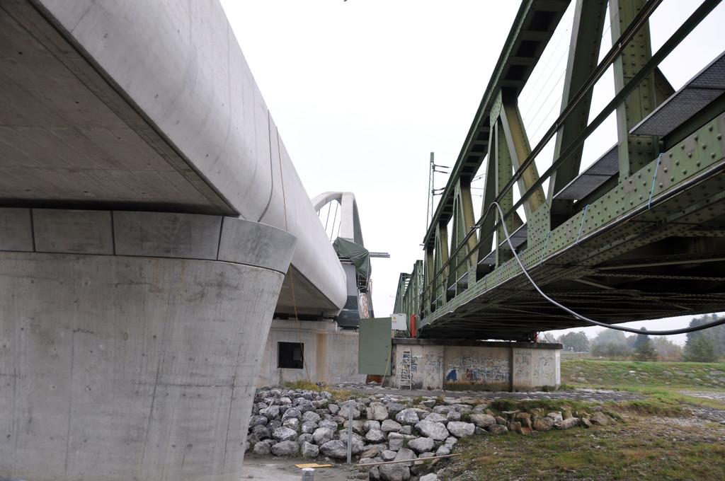 Die neue und die alte Eisenbahnbrücke.