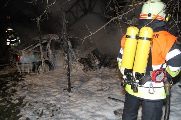Schuppen und Auto in Altach in Brand