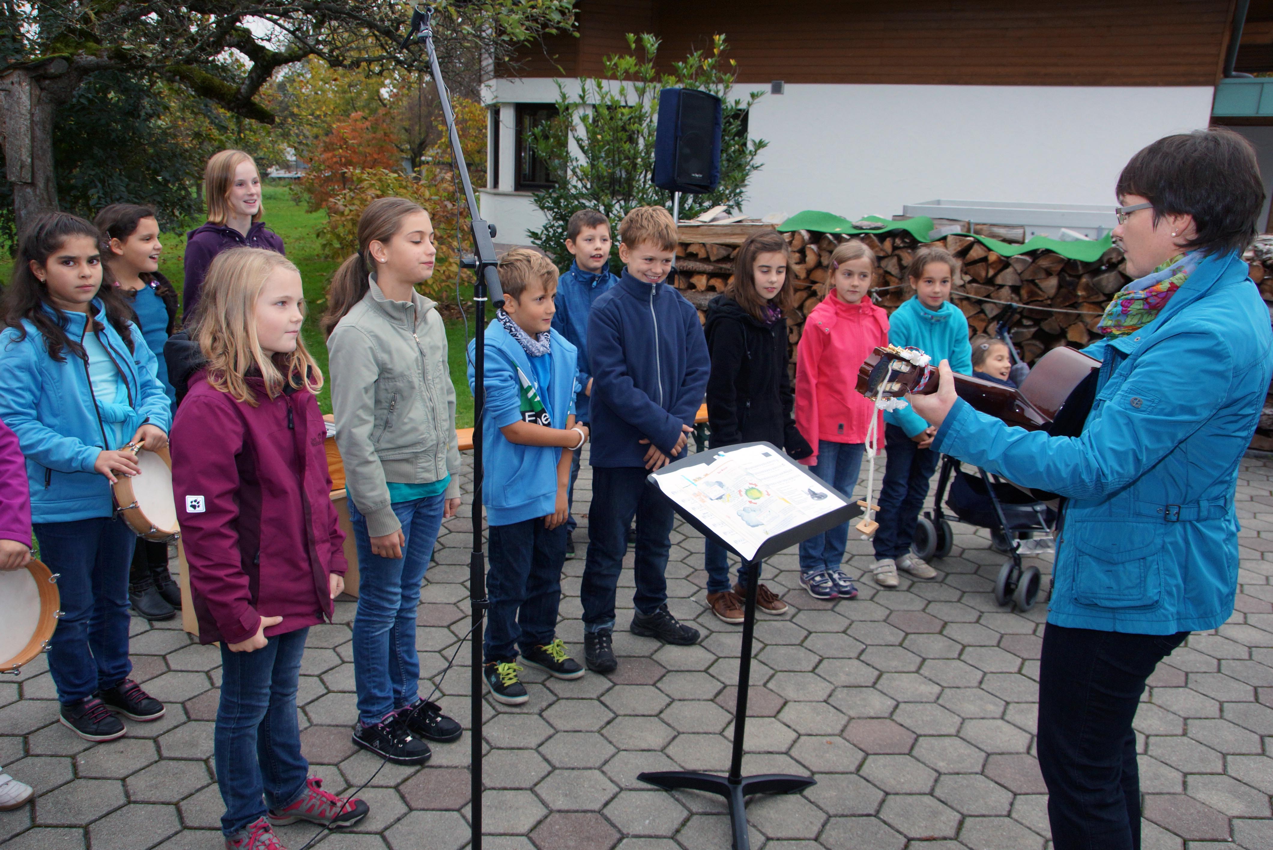 Die Volksschüler unter Cilli Egger umrahmten musikalisch.