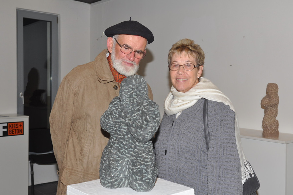 Auch Bildhauer Werner Deutschmann mit Rita bestaunten die Diabas-Figuren „im Raum“.