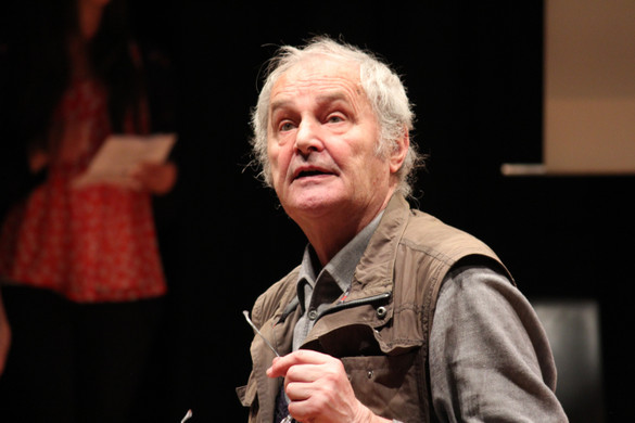 Gerold Amann erarbeitet mit zwei Klassen des Bludenzer BORG Musik aktiv eine vielschichtige szenische Lesung zu einem Text der jungen Vorarlberger Autorin Nadja Spiegel (© Kühn)