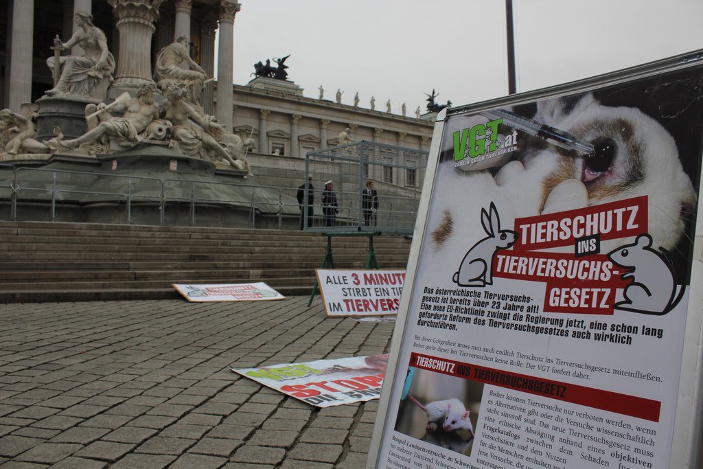 Tierschützerinnen protestieren nackt vor Parlament (Käfige)