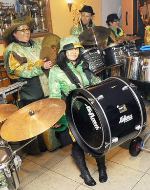 Kleine Frau mit großer Trommel