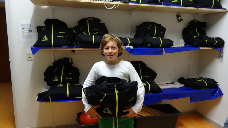 Ausgabe der neuen Skianzüge