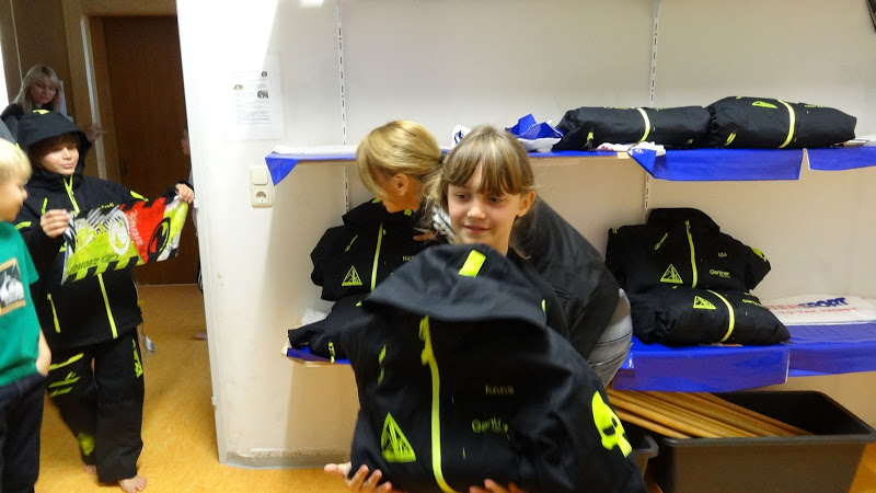 Ausgabe der neuen Skianzüge