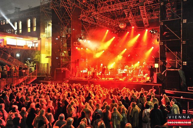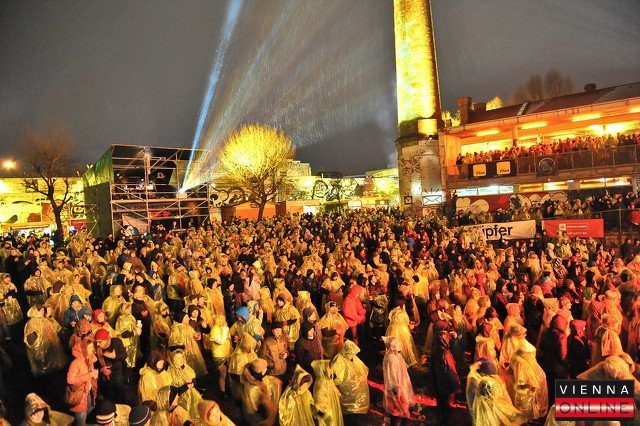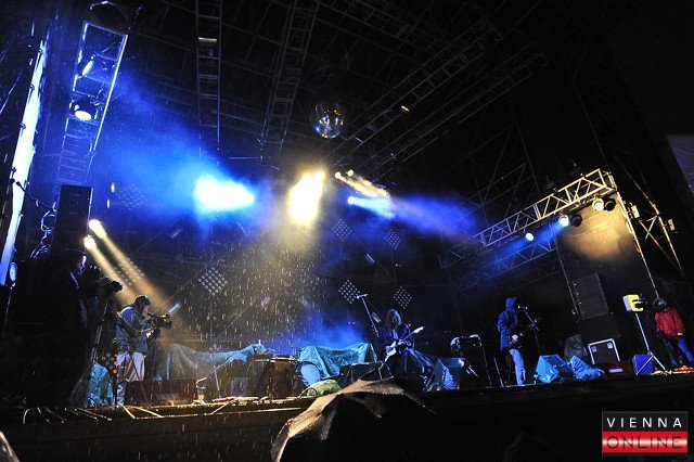 Mit einer großen Party in der Arena feierte Radio FM4 seinen 17. Geburtstag. Pflicht: Regenponchos. Kür: Kettcar, Mediengruppe T