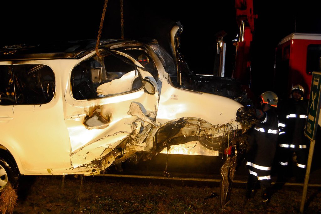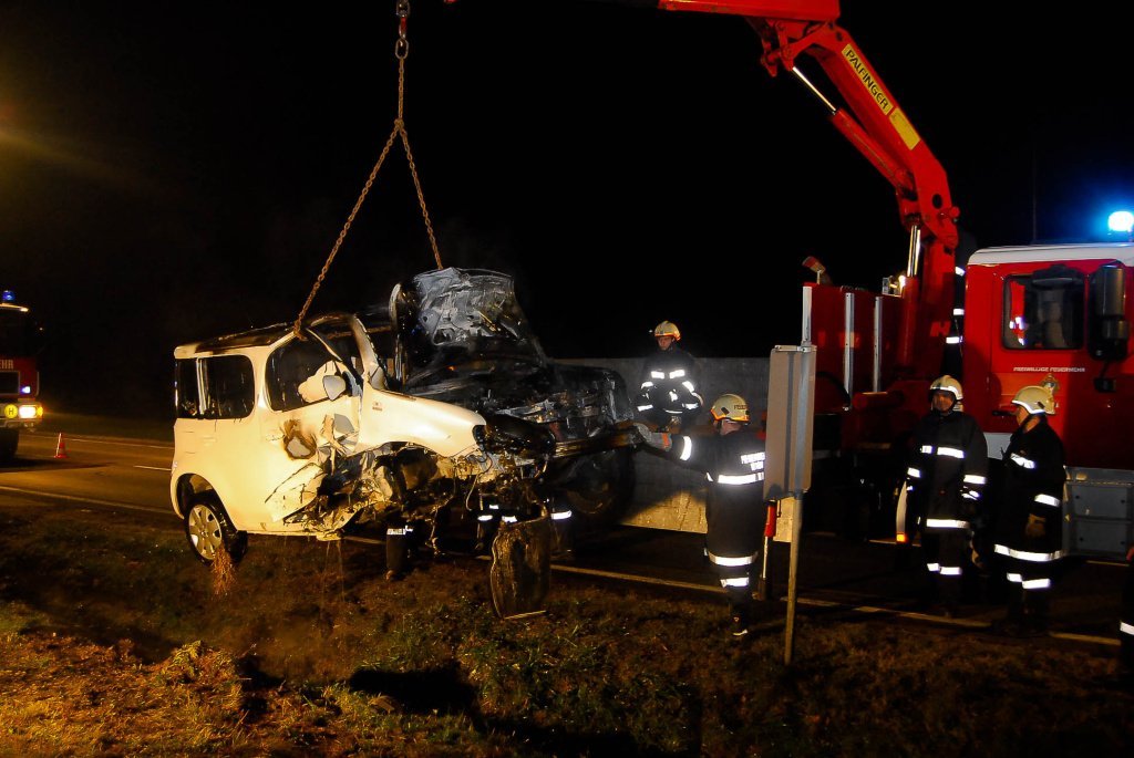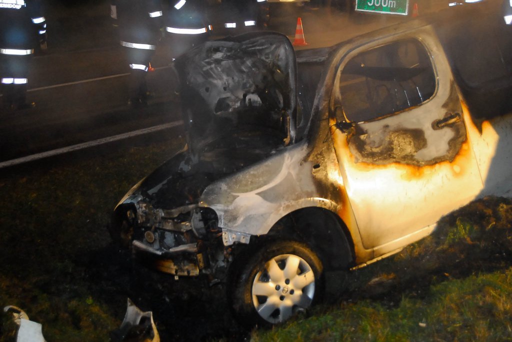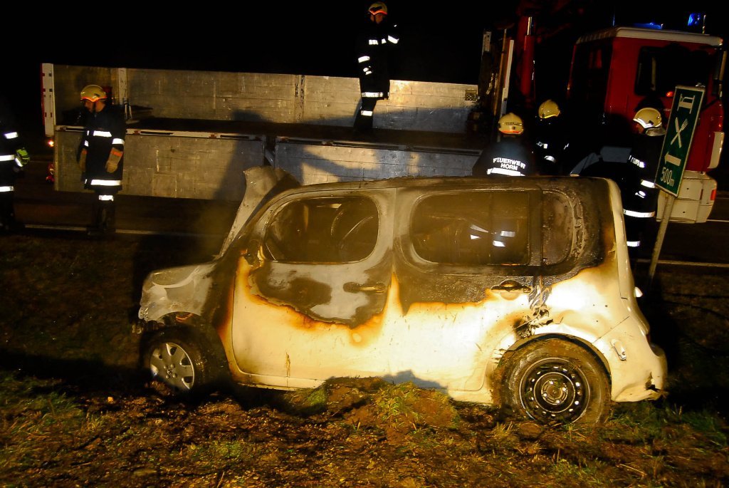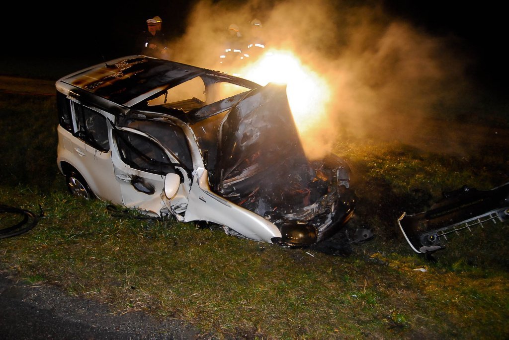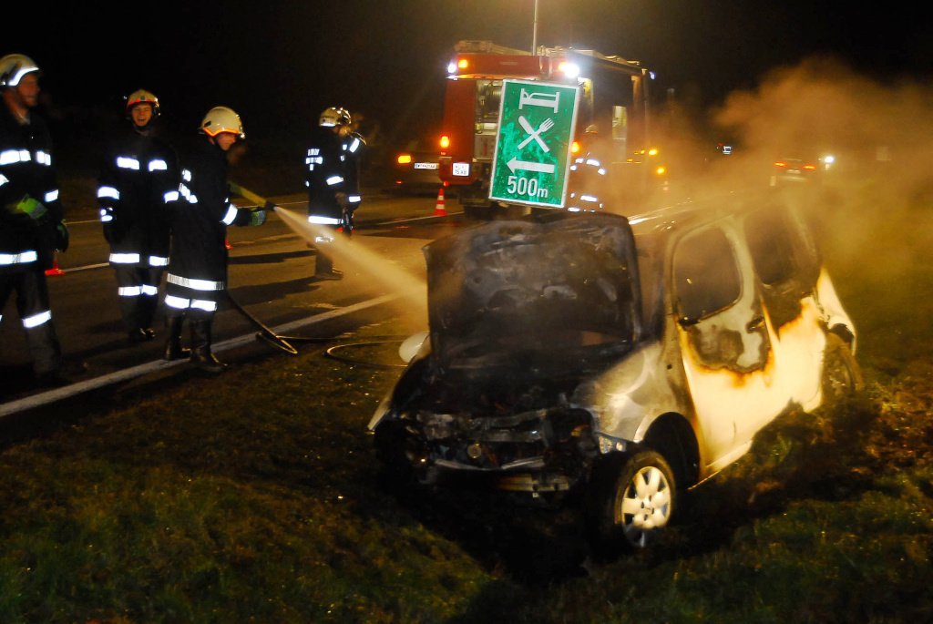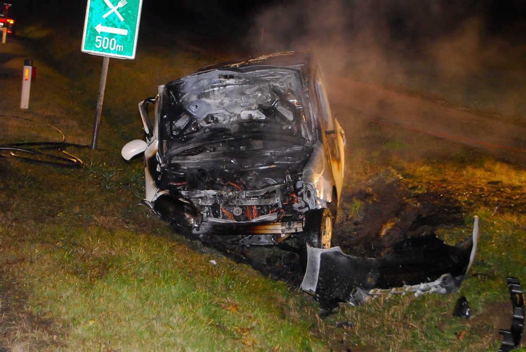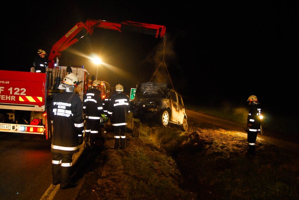 Fahrzeugbrand nach Verkehrsunfall auf der LB2 im Bezirk Horn