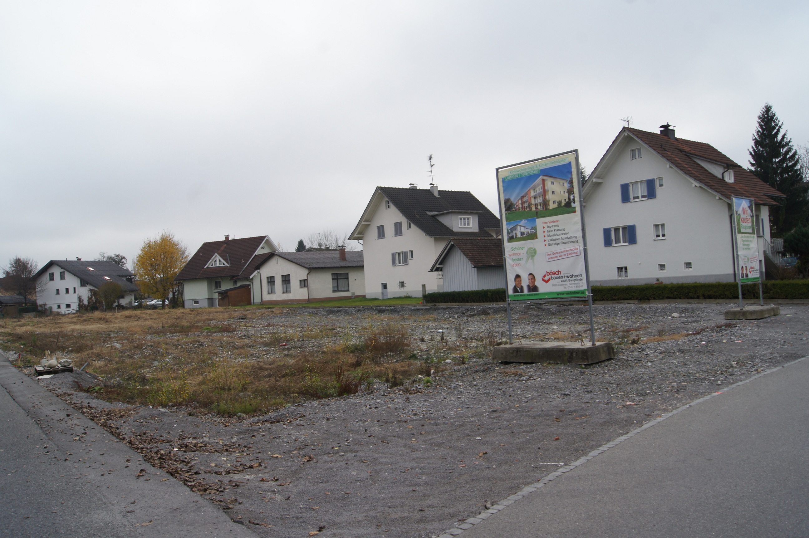 Auf diesem Grundstück entstehen zwei Kleinwohnanlagen und 4 Einfamilienhäuser.