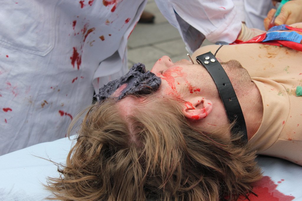 Anti-Tierversuchs-Perfomance am Stephansplatz: Blutiger Tierversuch an einem Menschen