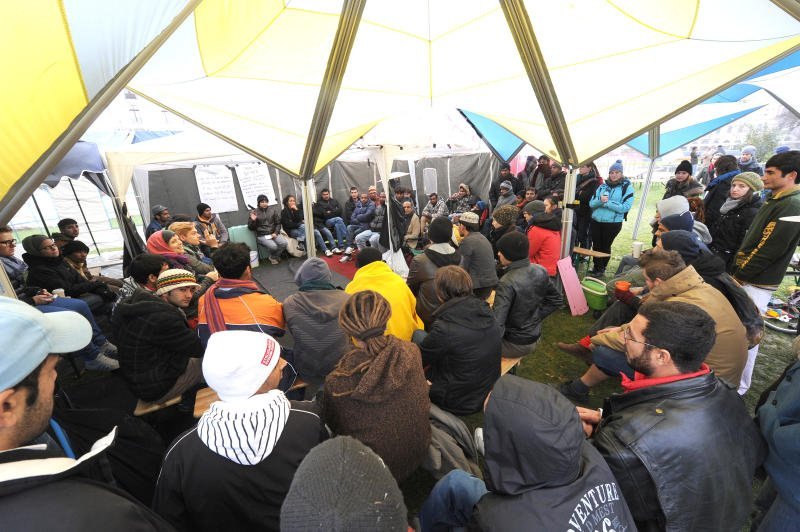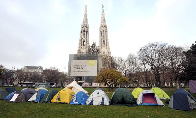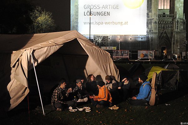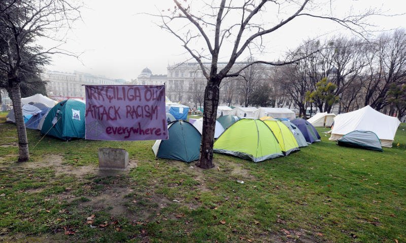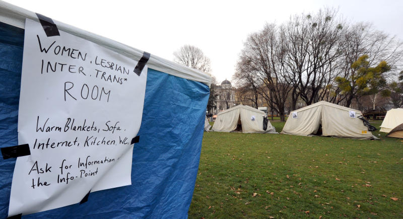Asylwerber aus Traiskirchen campen in Sigmund-Freud-Park in Wien