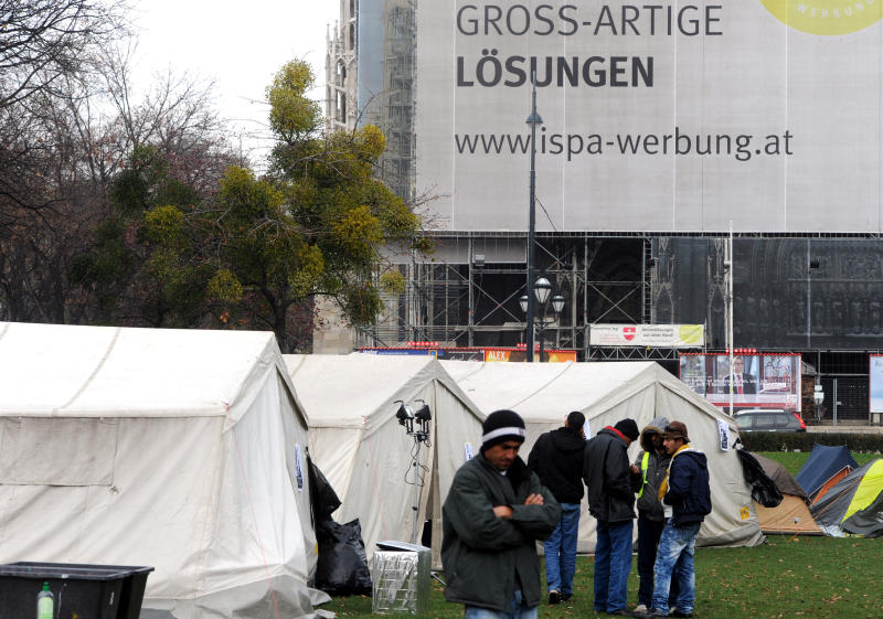 Asylwerber aus Traiskirchen campen in Sigmund-Freud-Park in Wien