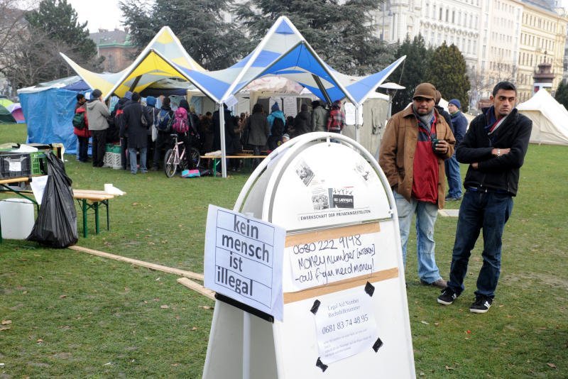 Asylwerber aus Traiskirchen campen in Sigmund-Freud-Park in Wien
