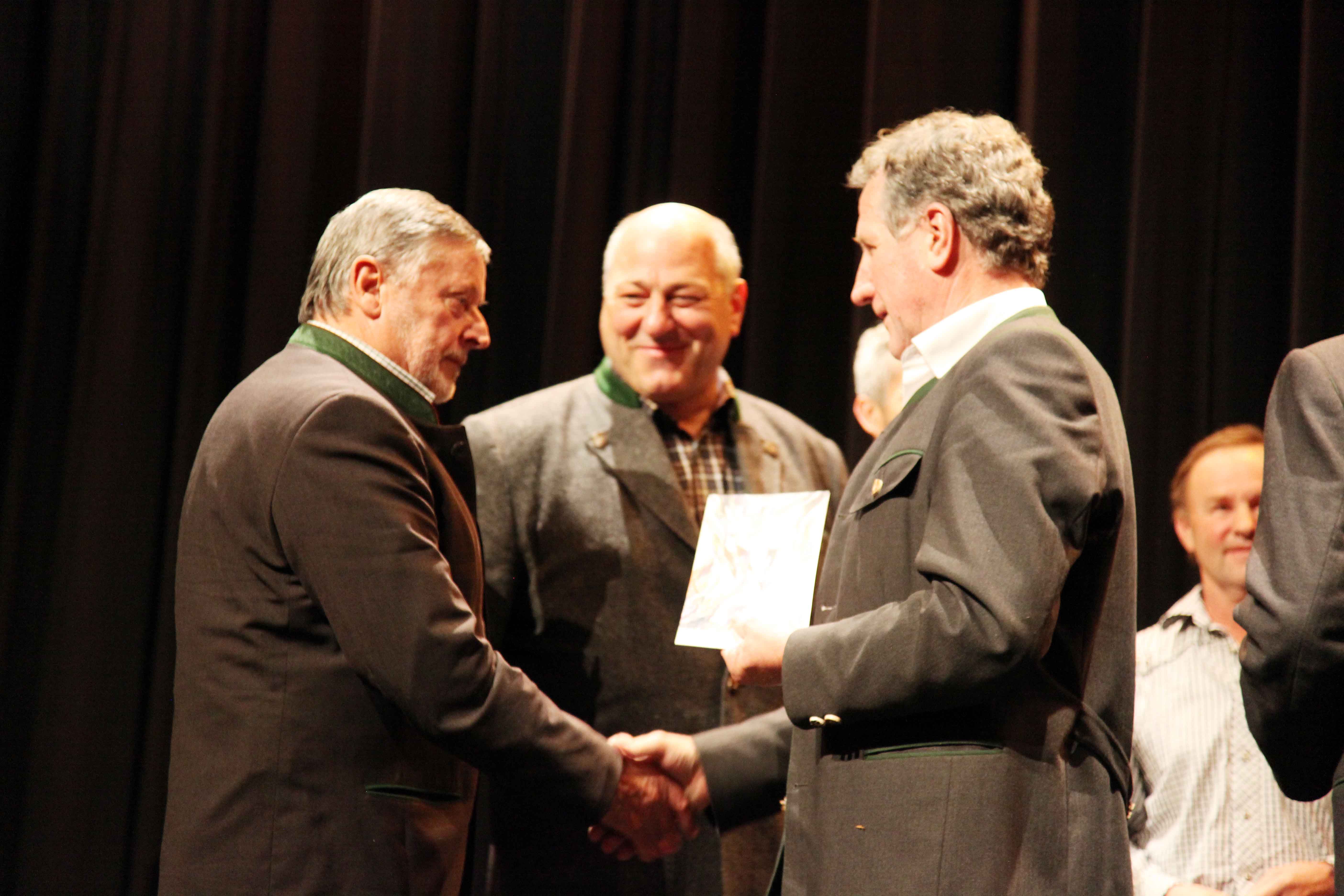 Verleihung des Preises von Landesrat Erich Schwärzler (r.) an Standesrepräsentant Rudi Lerch und Betriebsleiter Hubert Malin.