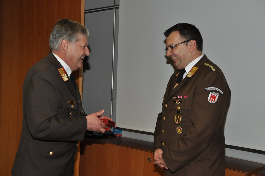 BFI Manfred Morscher überreichte Kommandant Wolfgang Huber das Verdienstkreuz in Bronze.