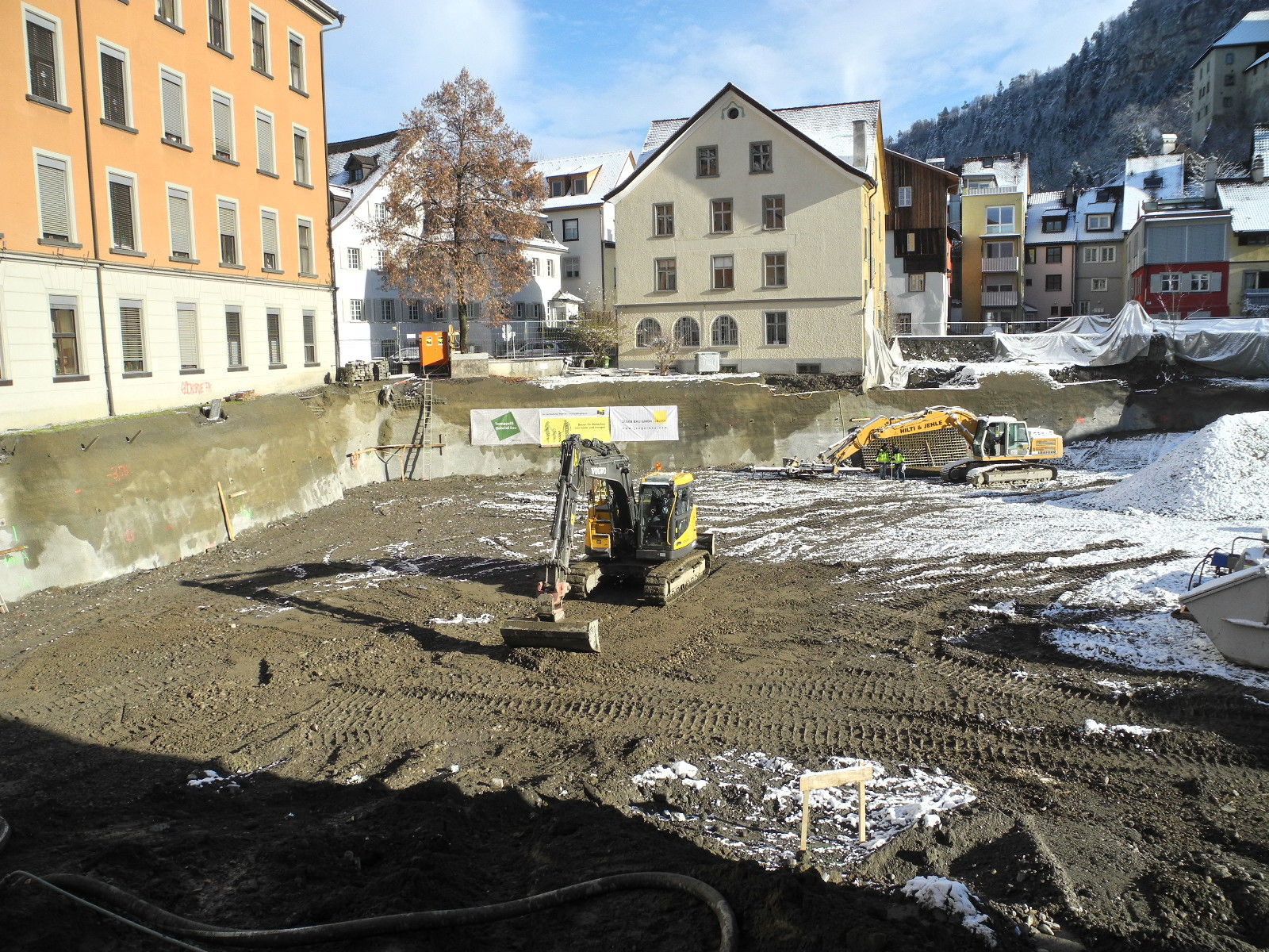 Der Gymnasiumhof ist eine riesige Baugrube für die kommende Tiefgarage