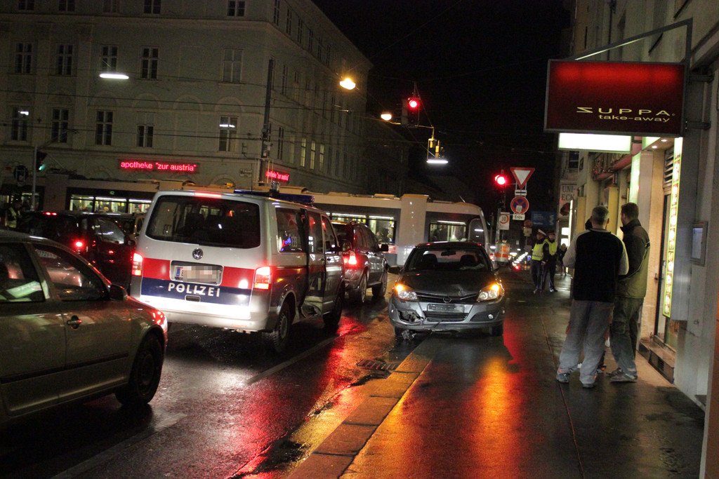 Unfall zwischen Polizeiwagen und Pkw, Währinger Straße-Ecke Schwarzspanierstraße