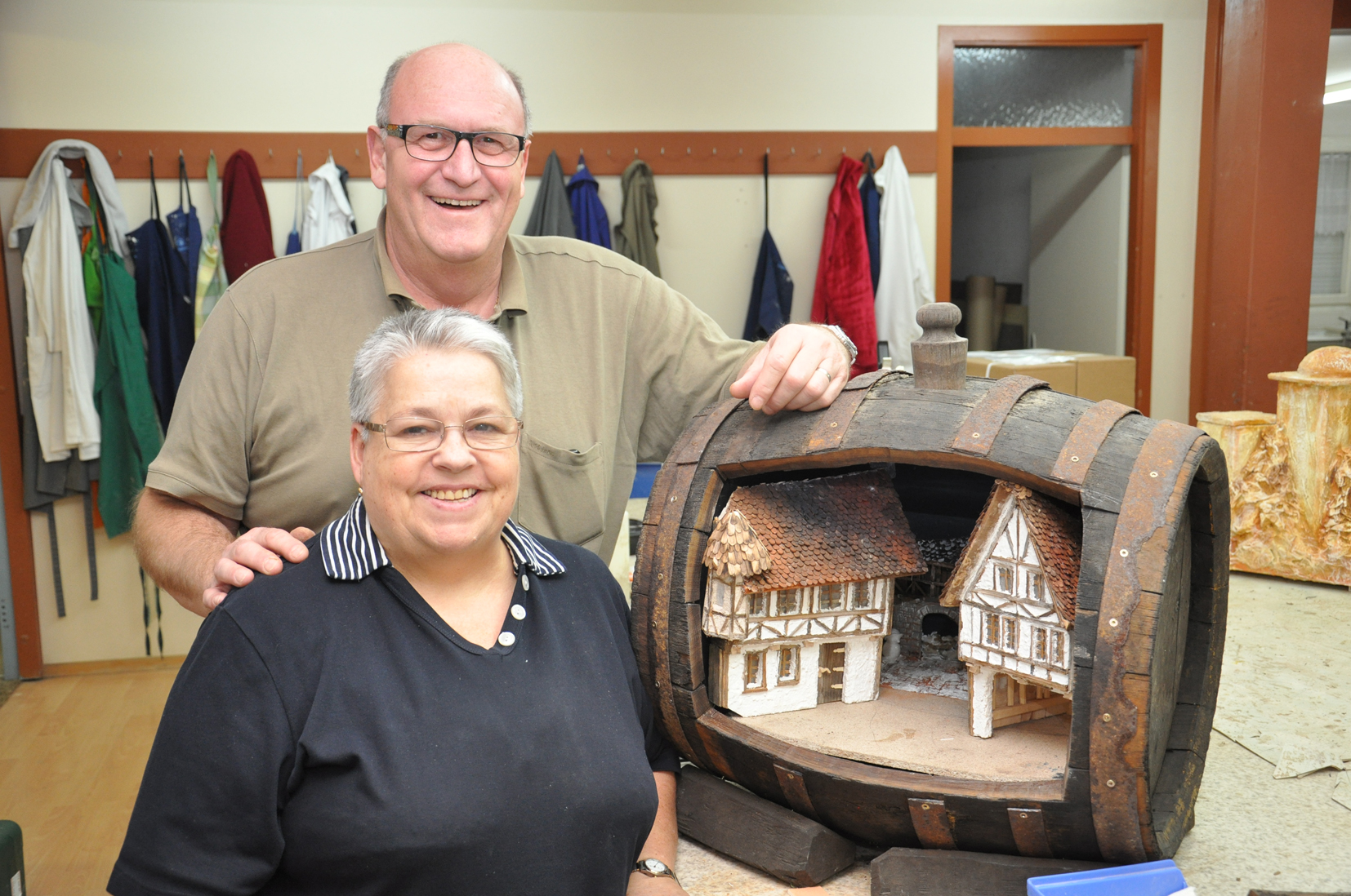 Gerhard Moser und Ursula Simmerle mit der Retzer Fasskrippe.