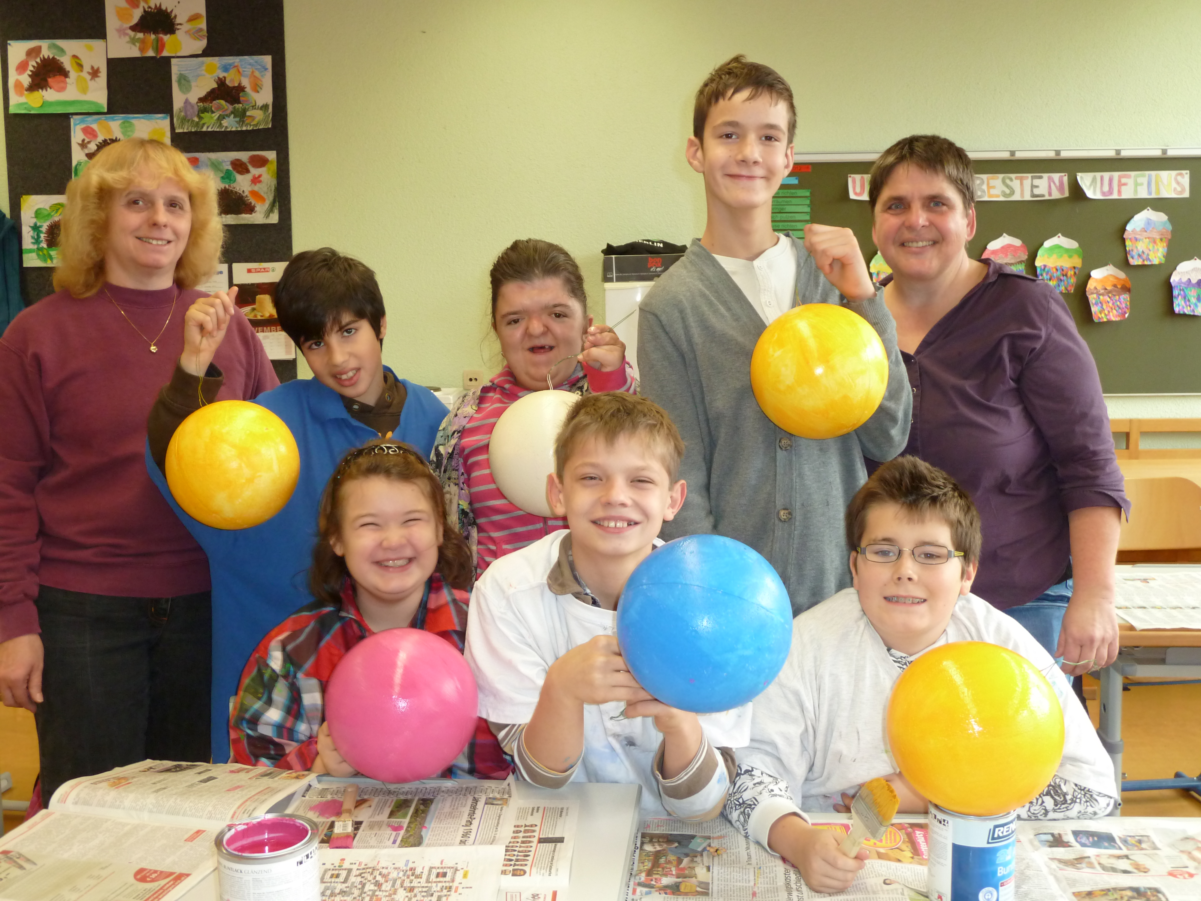 Alexandra, Enes, Laurin, Fabian, Sebastian und Natalie von der Förderklasse mit ihren Werklehrerinnen Ursula Bucsics und Monika Hesche.