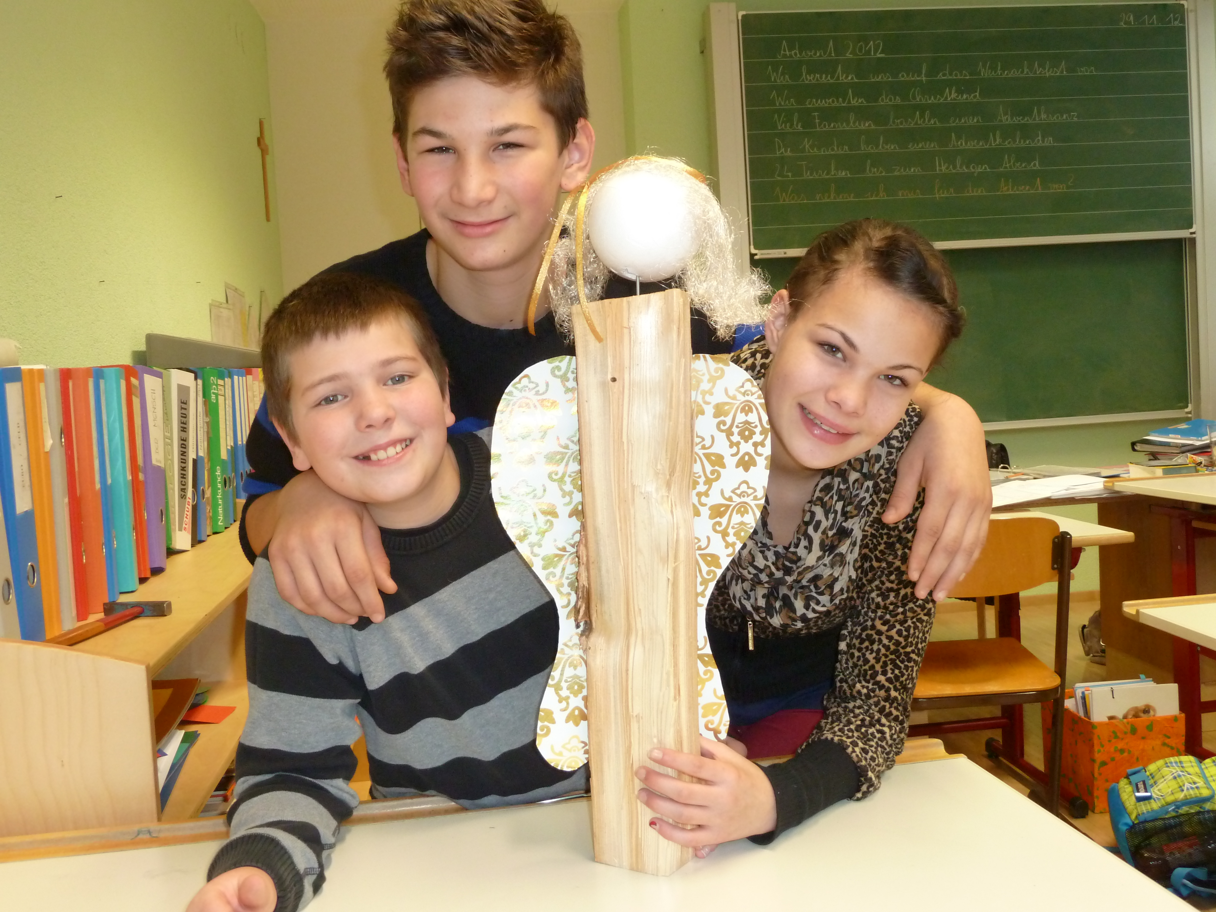 Bastelanleitung "Engel aus Holz": Fabian, Kevin und Inola.