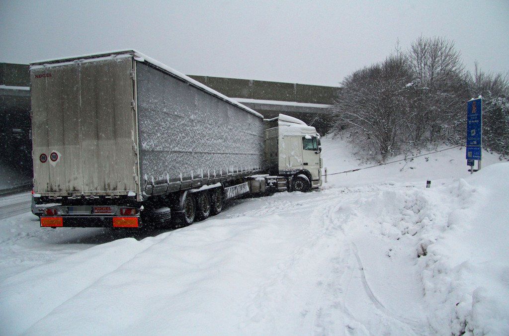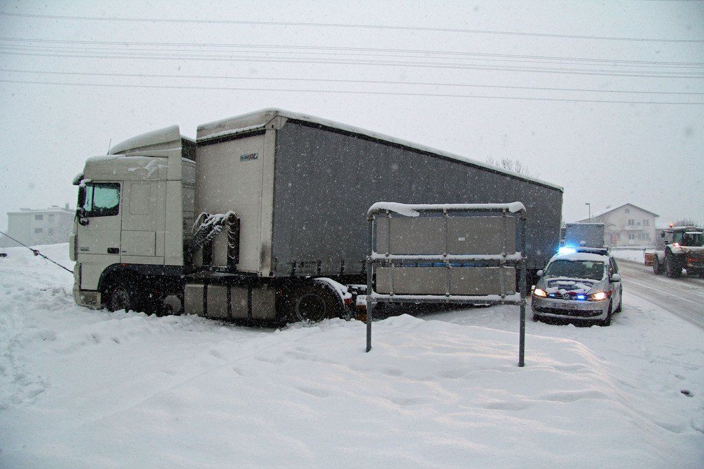 A14: Lkw auf Autobahnauffahrt Lauterach/ Wolfurt hängengeblieben