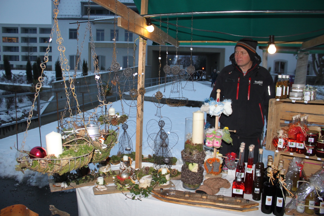 Dekorative Marktstände mit einer vielseitigen Auswahl an originellen Geschenksideen.